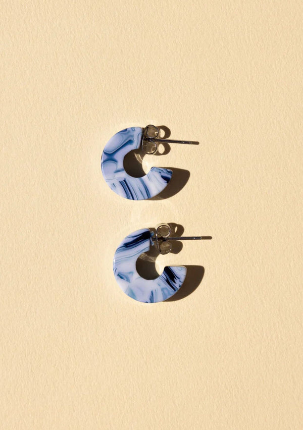 [Color: Ocean] A small blue and white marble acetate hoop earring. [Color: Ocean] A small blue and white marble acetate hoop earring.