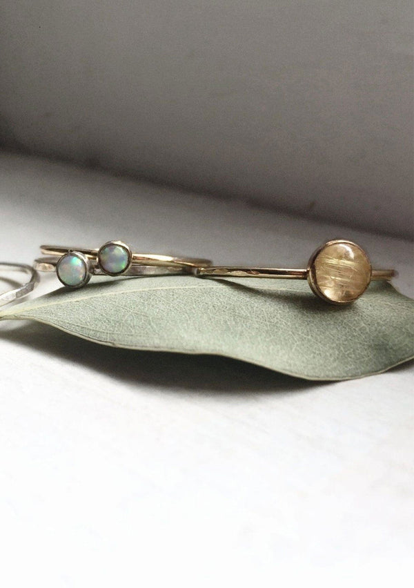 [Color: Opal] A delicate thin gold fill ring from Moon Pi jewelry, featuring a tiny opal accent.[Color: Opal] A delicate thin gold fill ring from Moon Pi jewelry, featuring a tiny opal accent.