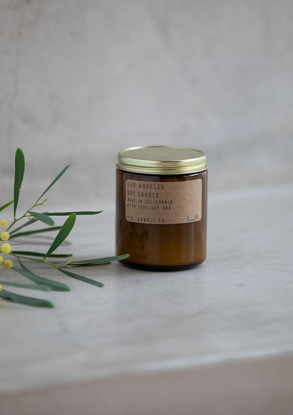 Our favorite city captured in a candle. The Los Angeles candle has notes of redwood, lime, jasmine, and yarrow. The 7.2 oz Standard Candles are hand-poured into apothecary-inspired amber jars with a kraft label and brass lid.