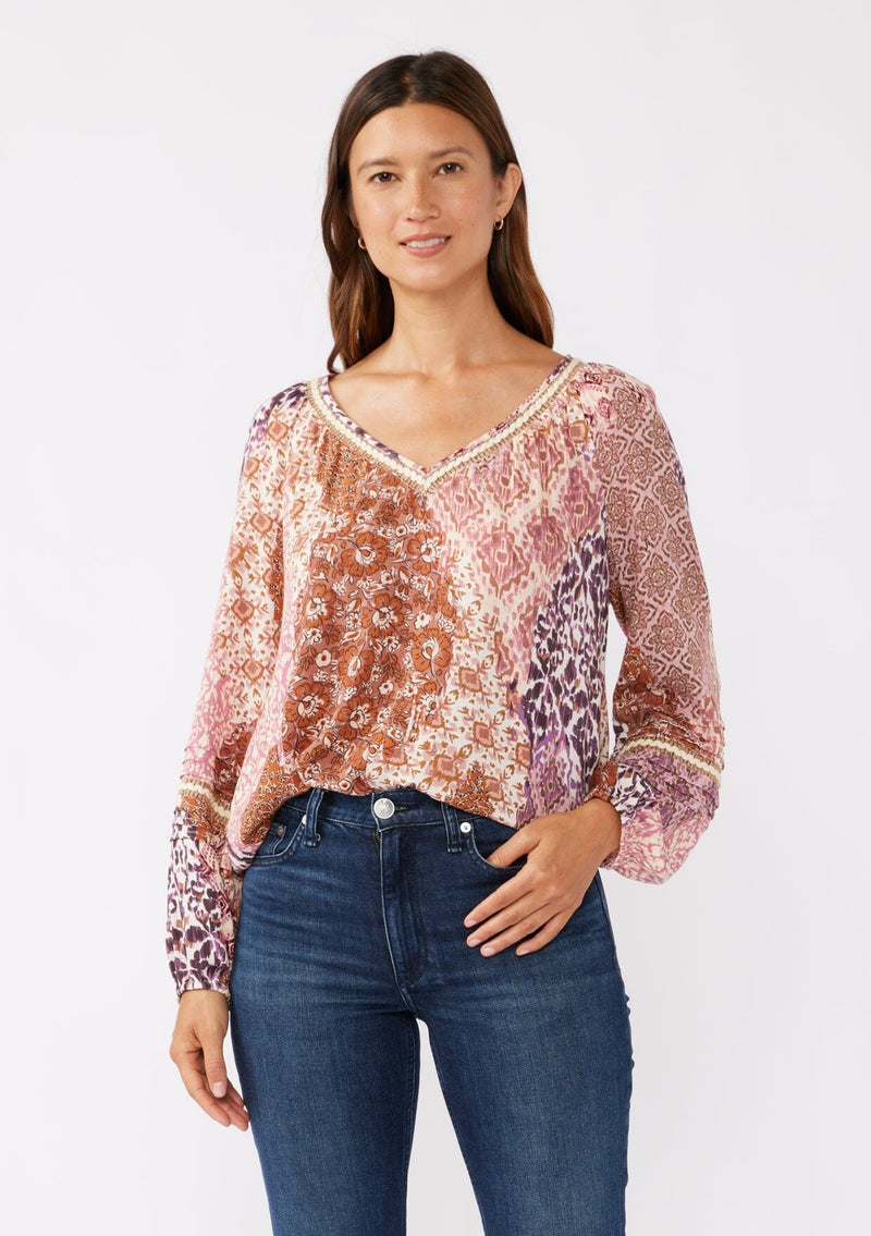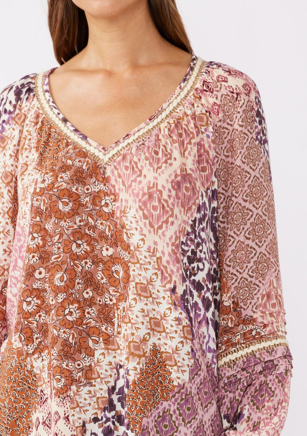 A classic long sleeve blouse in an ultra-bohemian patchwork print.