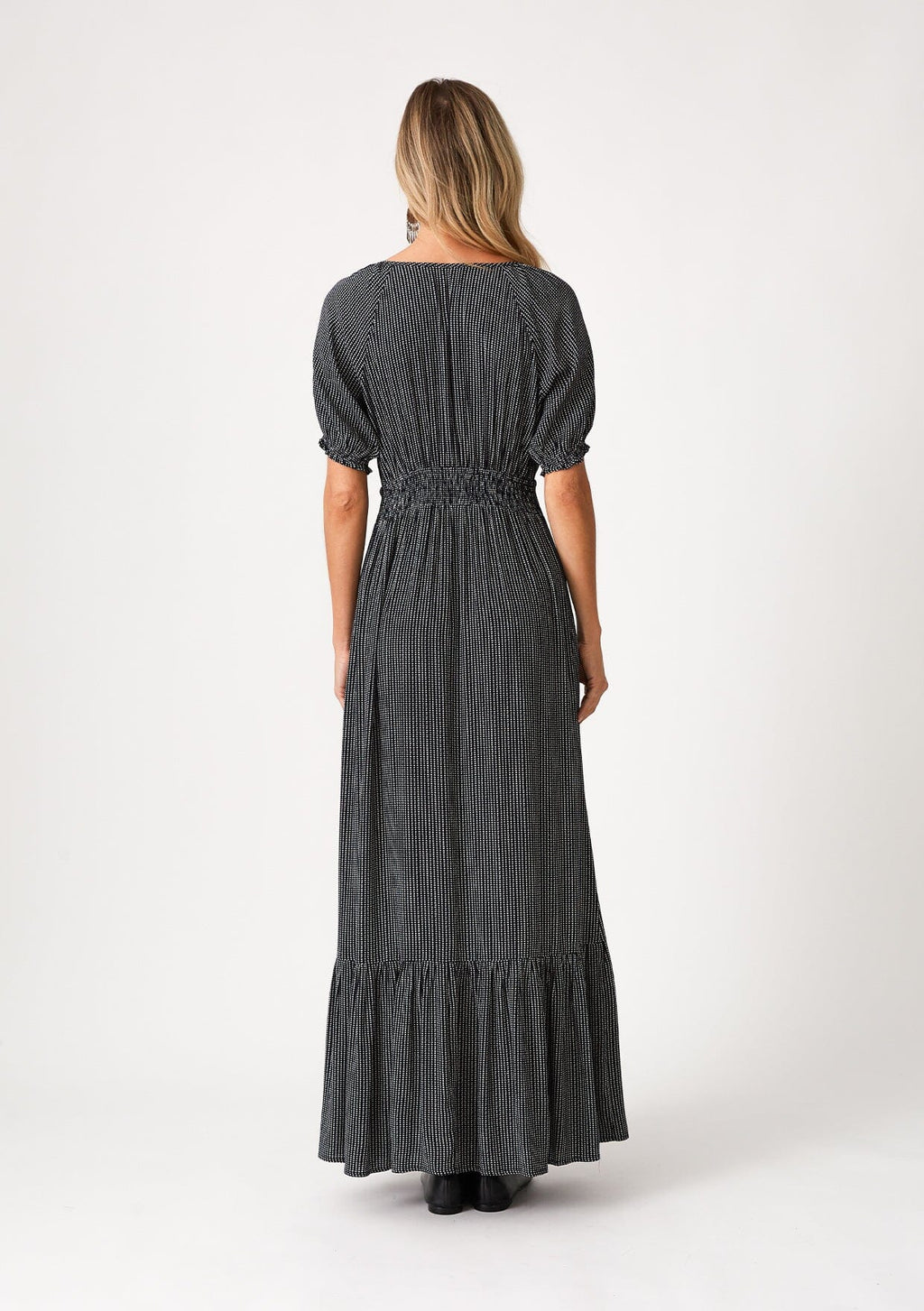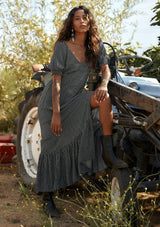 Classic dots add an elegant touch to this timeless boho maxi dress. Featuring charming short puff sleeves and a long, flowy tiered skirt. Perfect for your next special occasion, we love to style it with a simple heeled sandal.