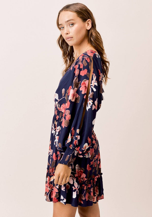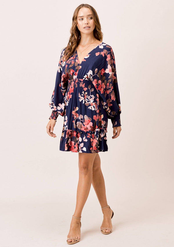 [Color: Navy/Blush/Olive] Lovestitch floral printed split sleeve mini dress smocked waist dress[Color: Navy/Blush/Olive] Lovestitch floral printed split sleeve mini dress smocked waist dress