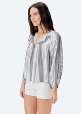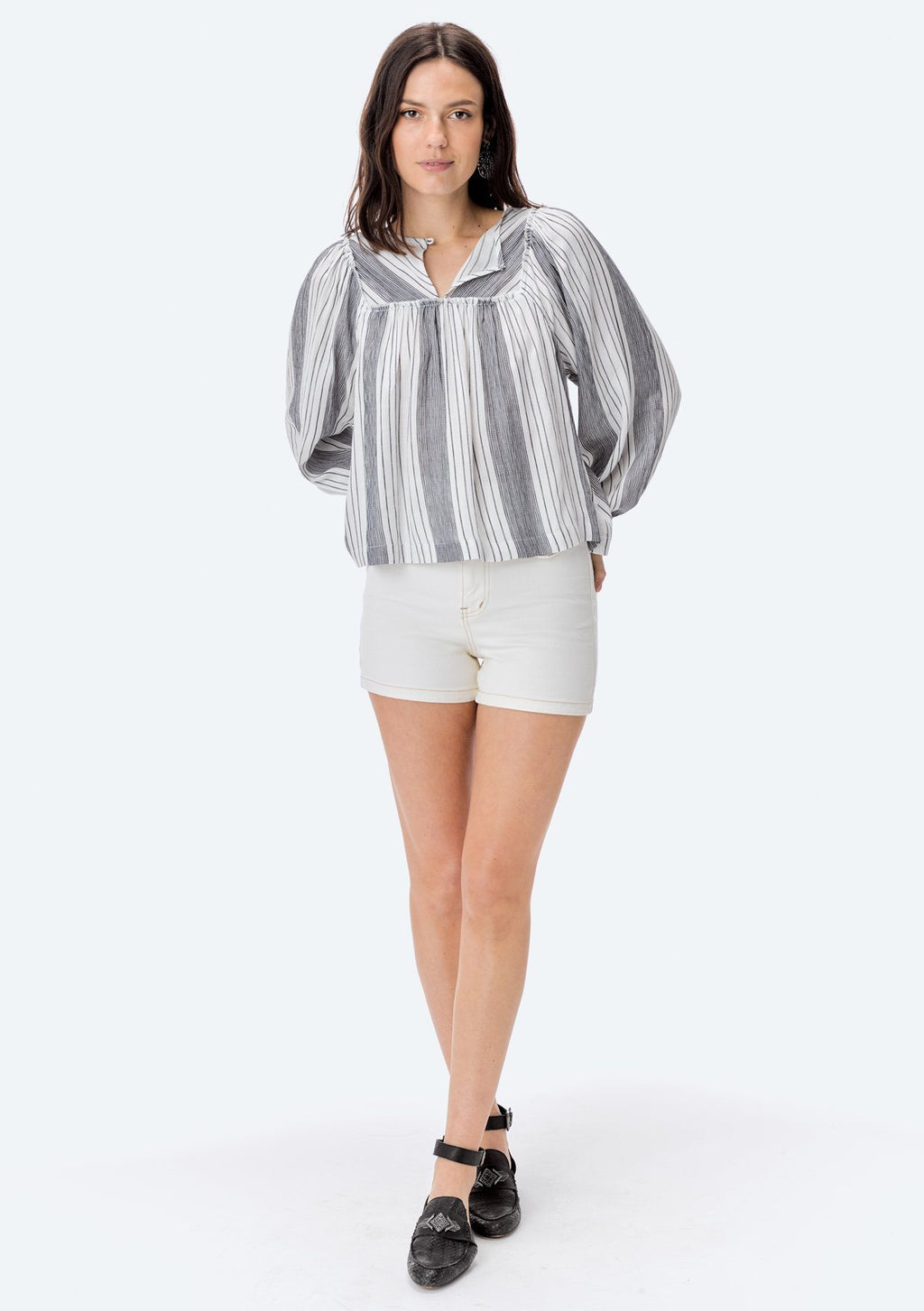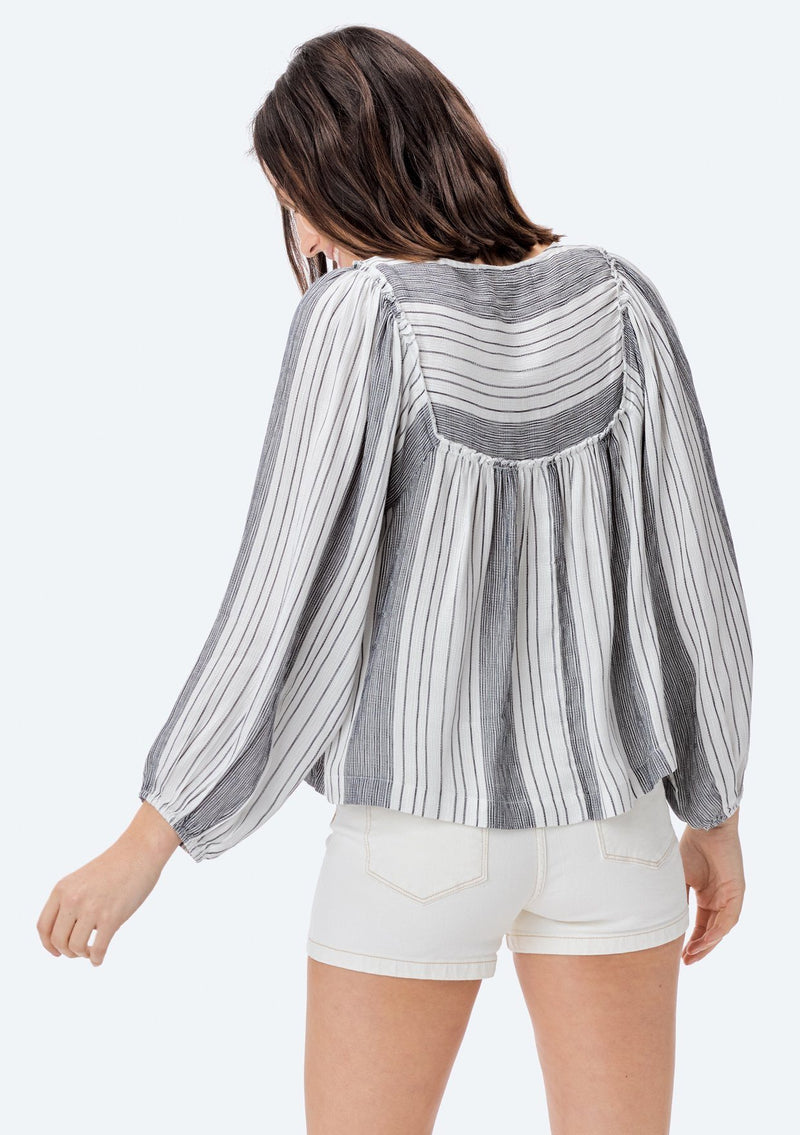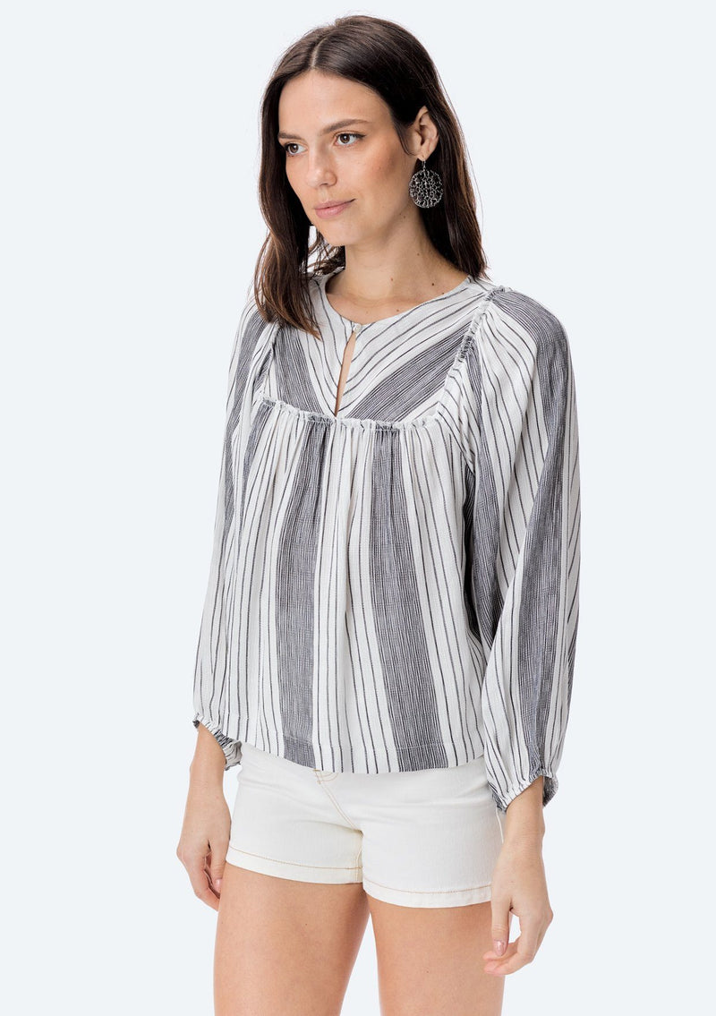 Shop The SaleLightweight and chic bohemian blouse featuring yarn dye stripes and fashion-forward balloon sleeves.