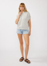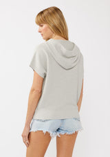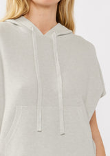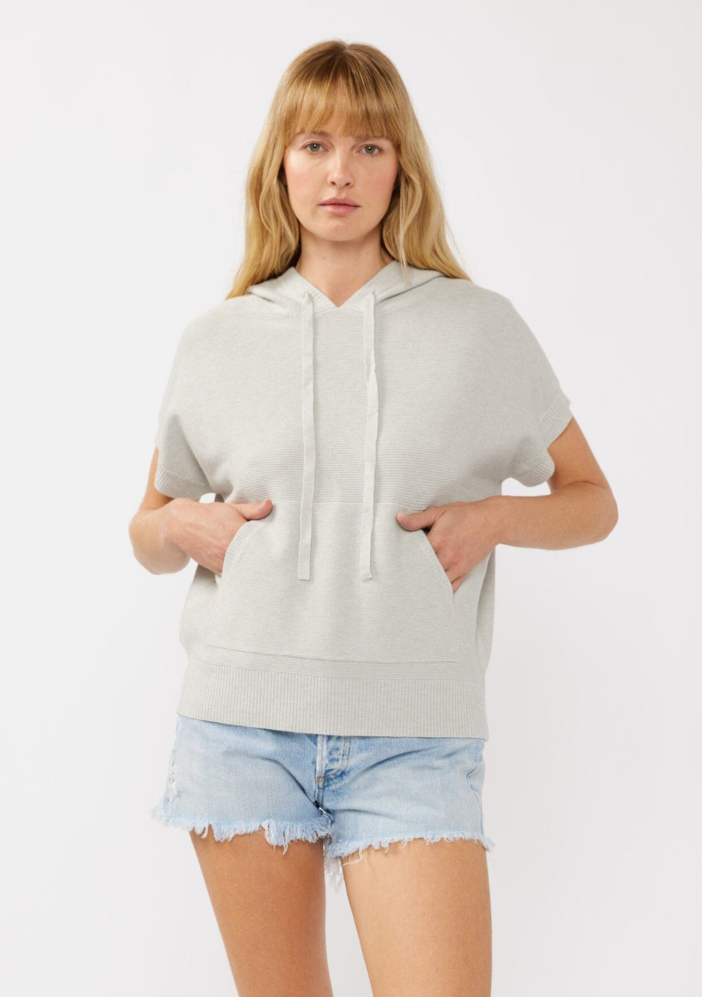 A new classic, our ultra-soft knit sweater top features short dolman sleeves, a drawstring hoodie, and a front kangaroo pocket. This elevated pullover blends laid-back comfort with sporty vibes, thanks to its cozy ribbed texture. Perfect for a post-gym coffee run or a leisurely stroll, it brings effortless sporty chic to every moment.