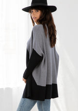 Snuggle up and keep warm in this effortlessly chic open cardigan in a neutral color block design. Featuring long ribbed dolman sleeves and a boxy, relaxed fit. Pair this cozy style with jeans and boots for a classic Fall look.