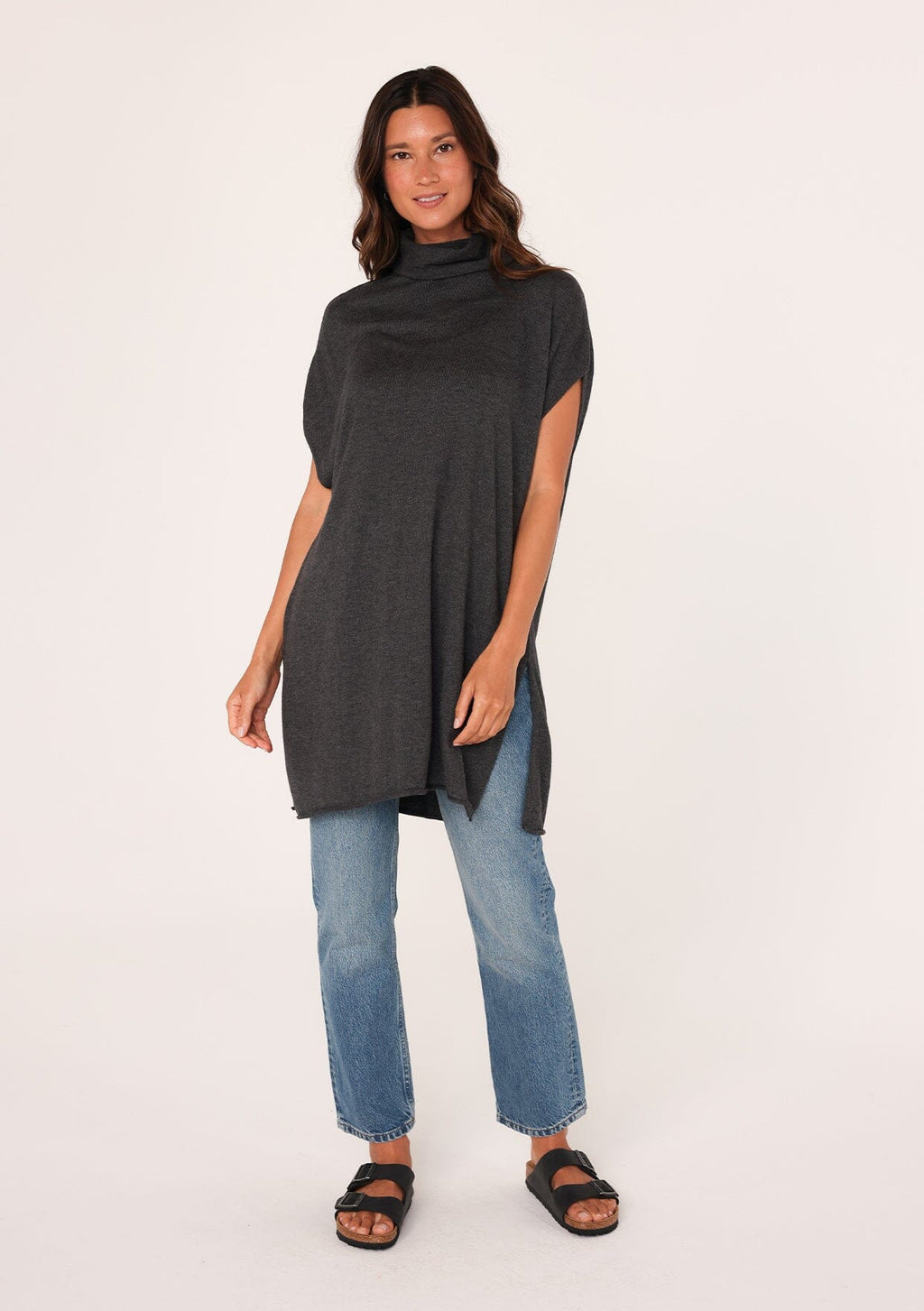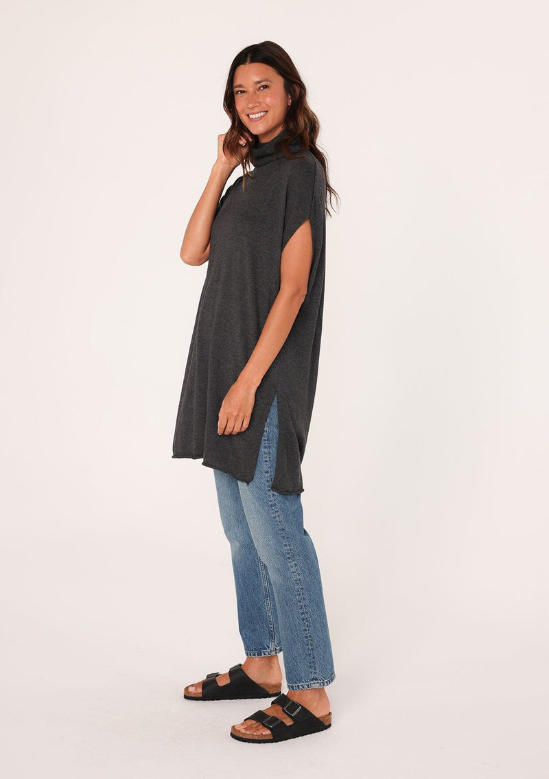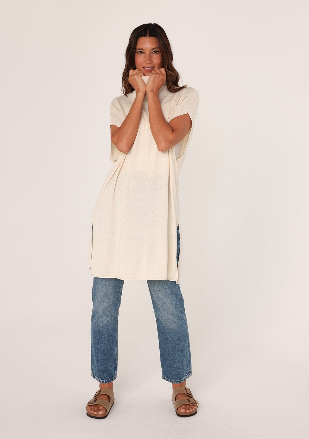 A luxuriously soft cashmere-blend funnel neck tunic with side vents, perfect for versatile fall styling. Its effortless fit makes it your go-to casual layer—just throw it on and go! Need extra warmth? Pair it with a long-sleeved top underneath for those cooler days.