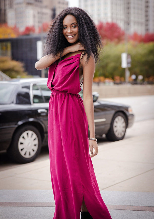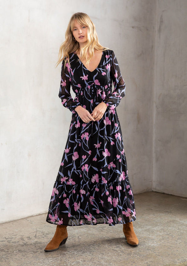 [Color: Plum/Rose] Lovestitch plum/rose floral printed maxi dress with plunging V-neckline, drapey kimono sleeves and sexy front slit.[Color: Plum/Rose] Lovestitch plum/rose floral printed maxi dress with plunging V-neckline, drapey kimono sleeves and sexy front slit.