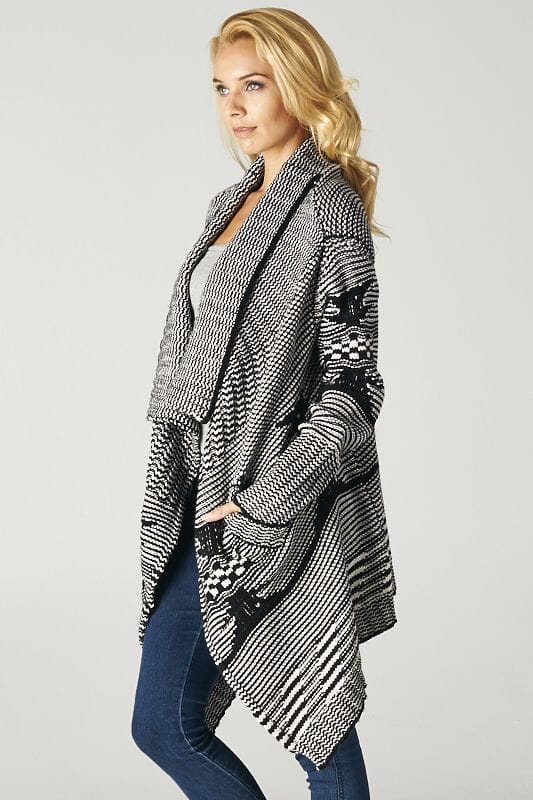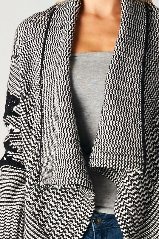 [Color: White/Rust/Taupe] Lovestitch white/rust/taupe Long sleeve, striped duster cardigan with cuffed rib sleeve and cable knit detail. [Color: White/Rust/Taupe] Lovestitch white/rust/taupe Long sleeve, striped duster cardigan with cuffed rib sleeve and cable knit detail.