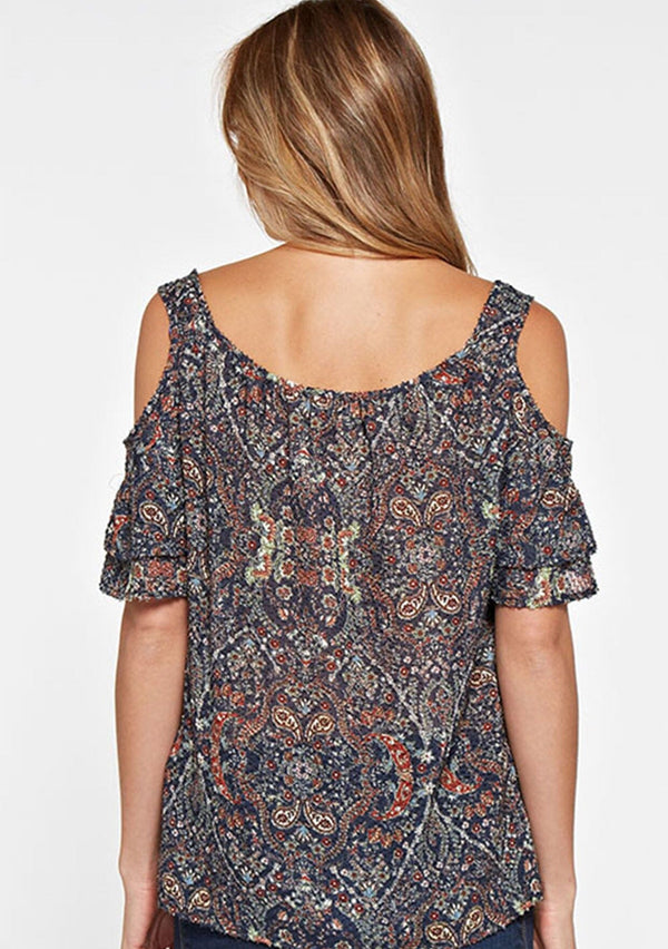 [Color: Midnight/Sand] Lovestitch floral paisley printed, flutter sleeve maxi dress with tiered, ruffled detail.[Color: Midnight/Sand] Lovestitch floral paisley printed, flutter sleeve maxi dress with tiered, ruffled detail.