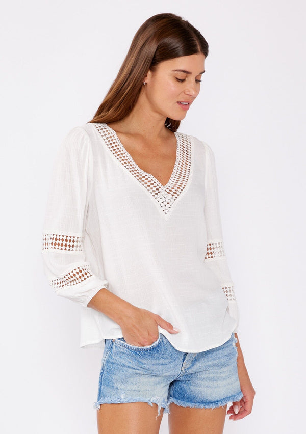 [Color: Black] A surplice front blouse in a floral embroidered lace. Featuring flattering voluminous dolman sleeves, a relaxed silhouette, and a flirty ruffled hemline. [Color: Black] A surplice front blouse in a floral embroidered lace. Featuring flattering voluminous dolman sleeves, a relaxed silhouette, and a flirty ruffled hemline.
