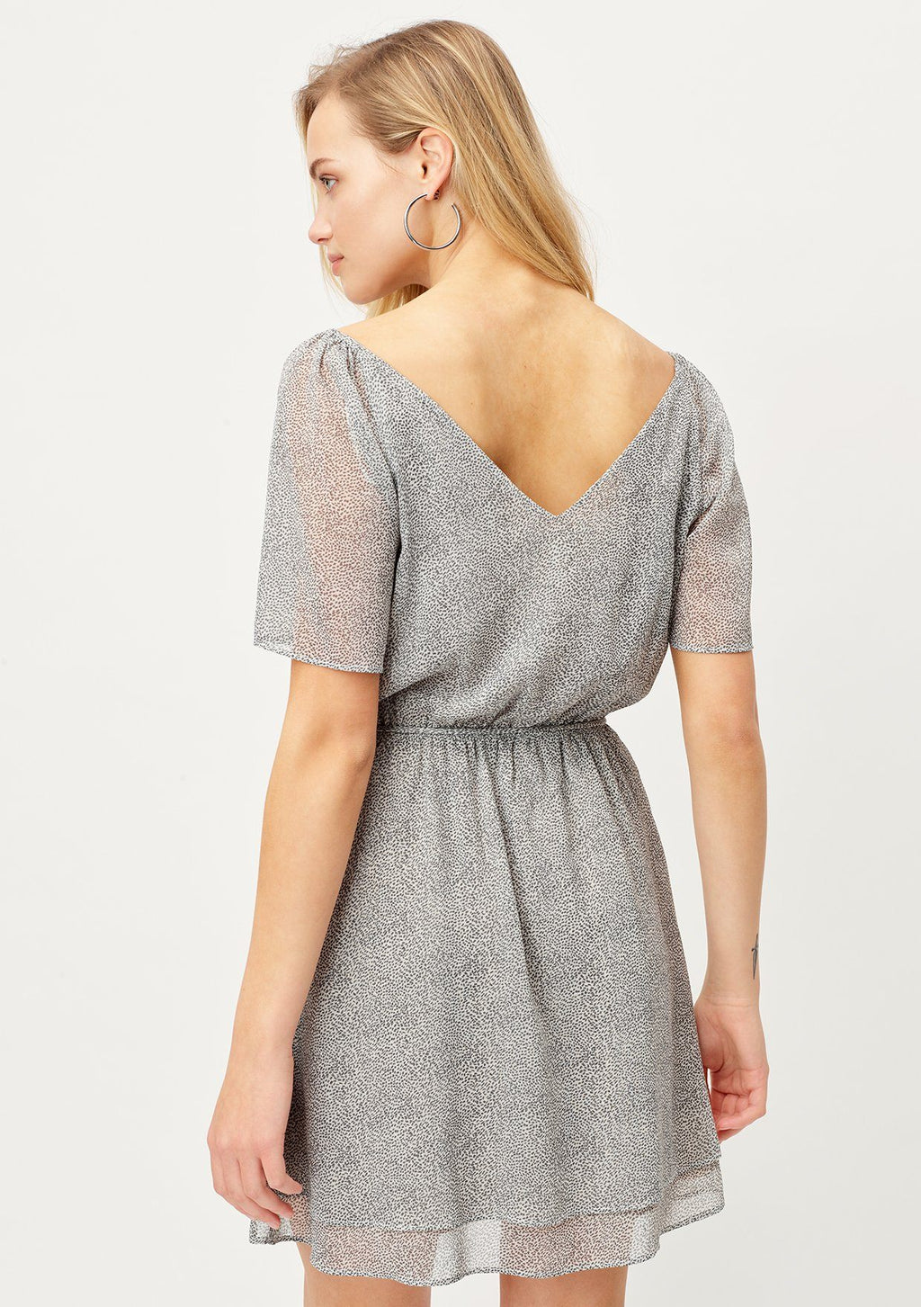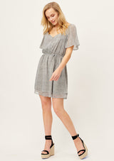 Shop The SaleProfessional on the top, playful on the bottom! This adorable and elegant mini dress has a plunging V-neckline in front and back, flattering sheer sleeves, a waist-defining spaghetti tie belt, and subtle tiny dot details. It's the perfect little dress for working from home!