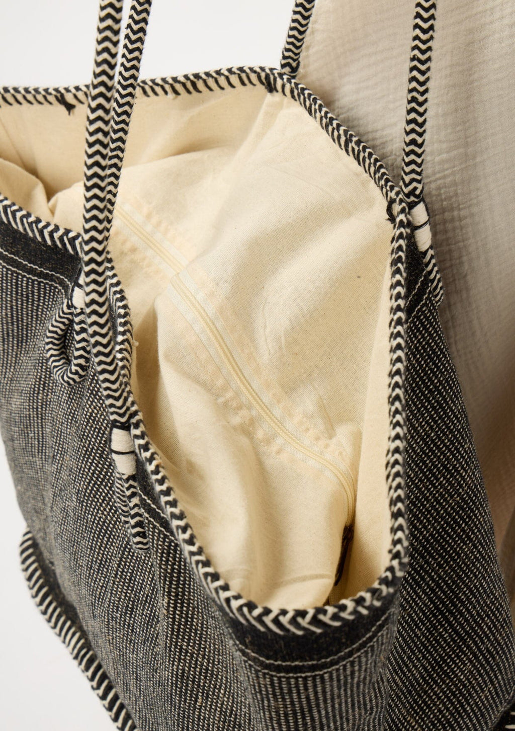 Elevate your everyday style with this ultra-bohemian cotton tote bag. Featuring beachy rope handles and a zippered closure. The large carryall size is perfect for the beach or your next vacation.