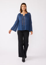 ![[Color: Blue Indigo] A detailed shot of a brunette model wearing a classic bohemian blue cotton blouse. With crochet trim, a split v neckline, and long bell sleeves.](http://www.shoplovestitch.com/cdn/shop/files/I-15321W-SQV_BLUEINDIGO-D_160x.jpg?v=1748479514)
