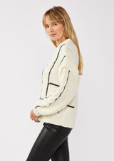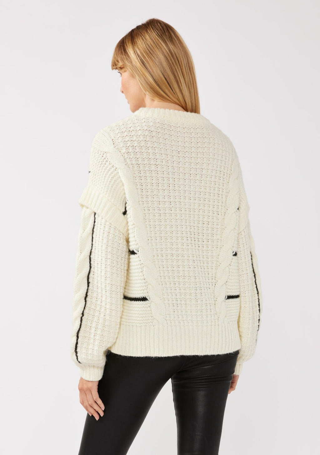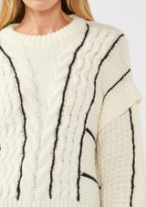 ![[Color: Cream/Black] A detail image of a blonde model wearing a cozy knit sweater with a mixed fabric patchwork and cable knit detailing. This casual sweater features a crew neckline, long sleeves with a dropped shoulder, and a contrasting stripe accent. A cold weather staple for the fall and winter season.](http://www.shoplovestitch.com/cdn/shop/files/092024_219_160x.jpg?v=1758222189)