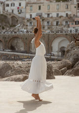 This classic bohemian maxi dress is giving Greek goddess vibes and we're loving it! Featuring a flattering smocked waist and a halter neckline, you'll be reaching for this stunning white maxi all summer long!