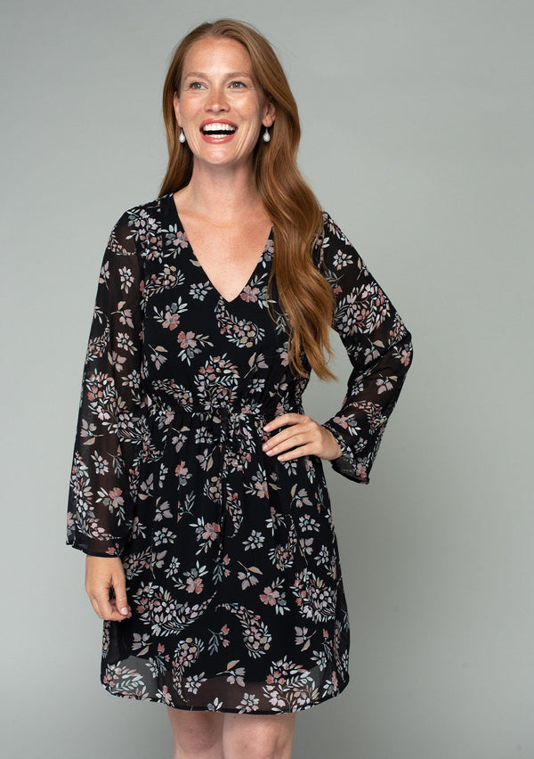 [Color: Black/Rose] Lovestitch floral printed dolman sleeve faux wrap mini dress[Color: Black/Rose] Lovestitch floral printed dolman sleeve faux wrap mini dress