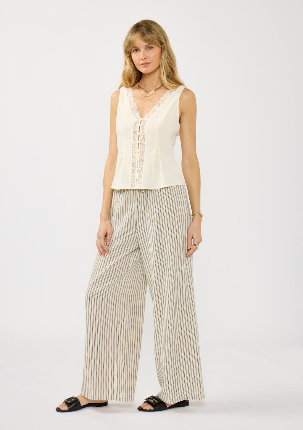 ![[Color: Natural/Black] A front facing image of a blond model wearing a lace top with a beige bottom with black stripes. Featuring an elastic waist with a drawstring and side pockets.](http://www.shoplovestitch.com/cdn/shop/files/I-30242W-TQS-NATURAL-BLACK-FRONT1_160x.jpg?v=1771568817)