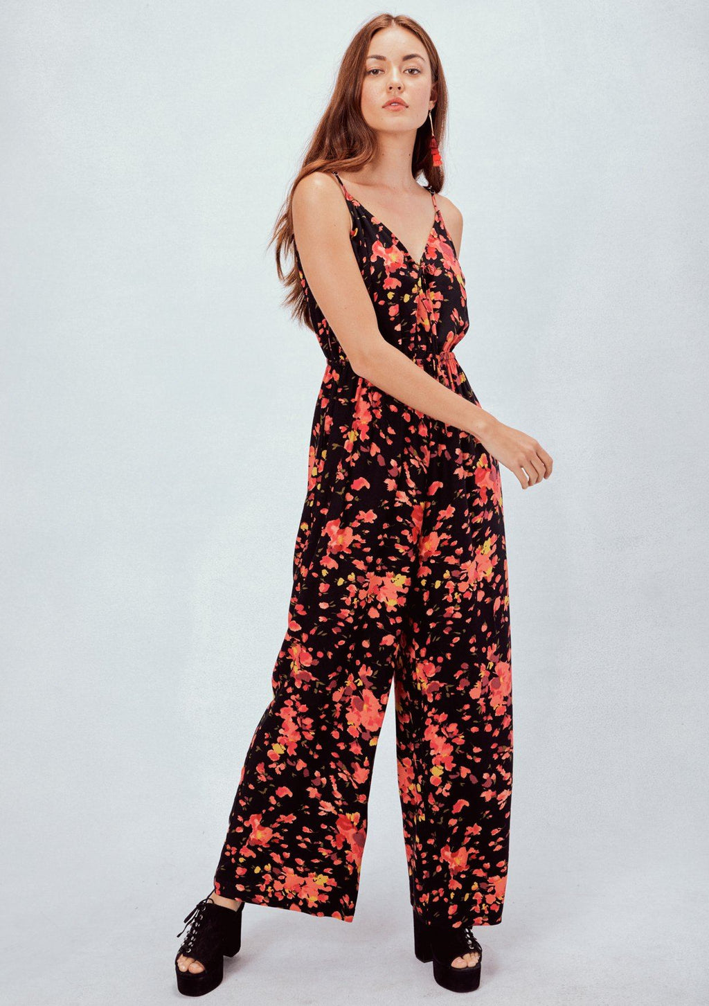 Just when you thought the perfect floral jumpsuit didn't exist, we bring you this! Featuring a flirty keyhole front tie detail and an elastic waist for definition, this cute one-piece is perfect for throwing on with heels for a night out or pairing with flats and a denim jacket for a pretty daytime look.