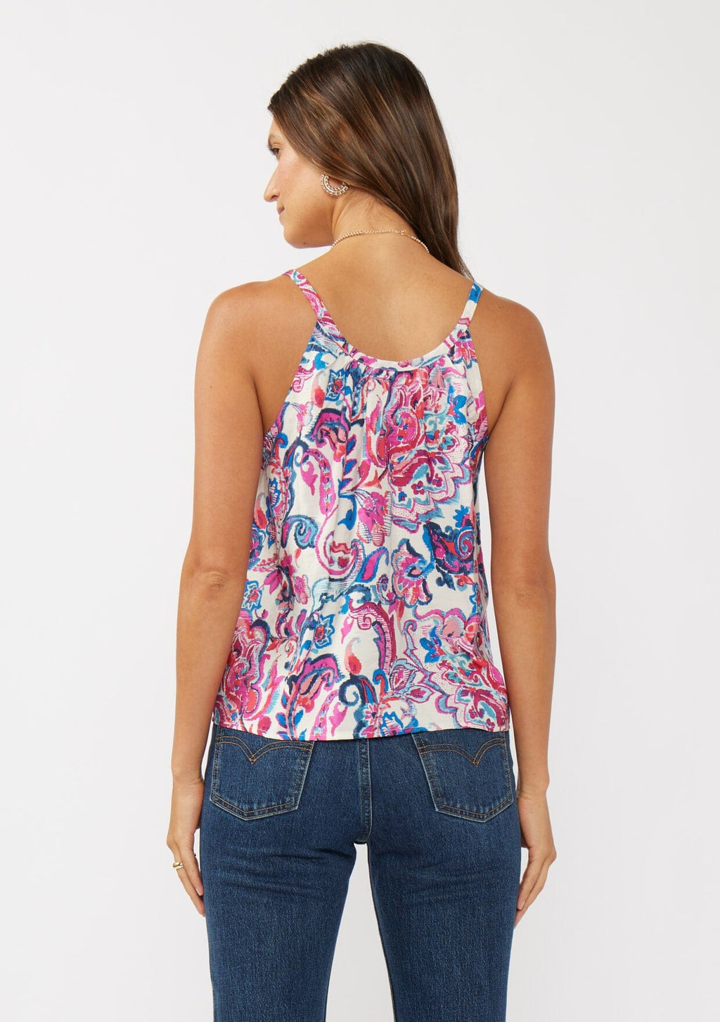 A must-have for warm days, this effortlessly chic camisole features a relaxed fit, button front, and flattering scoop neckline. The bold floral print adds a vibrant touch, making it perfect for anything from a casual brunch to a night out.