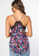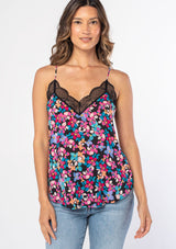 Our best-selling lace trim camisole in a bright, multicolor floral print.