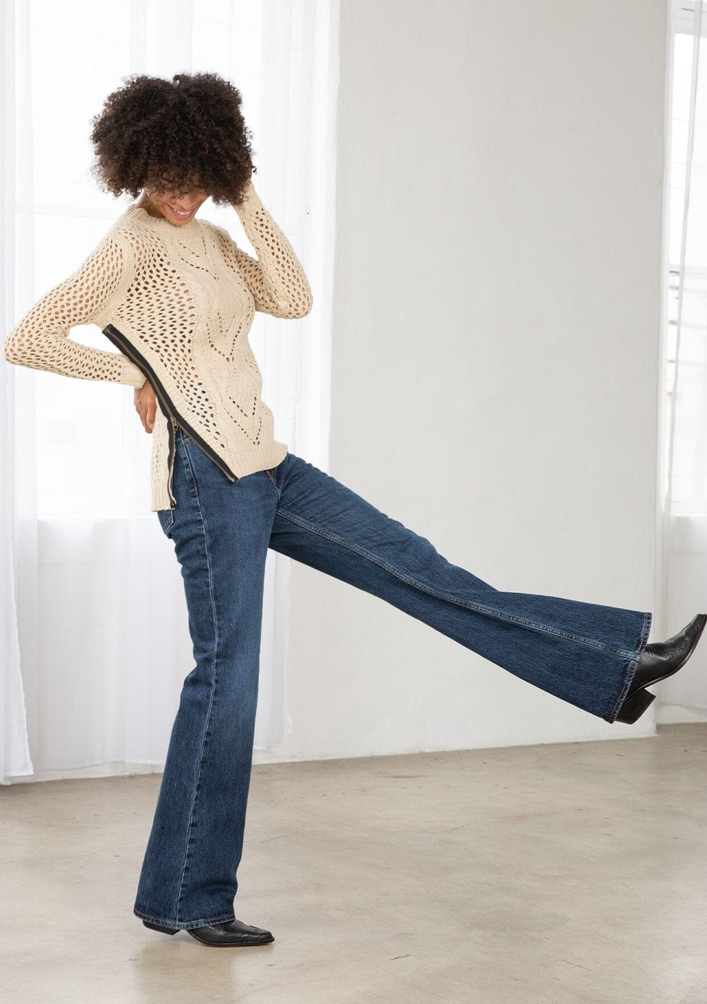 A crochet knit pullover with a size zipper.