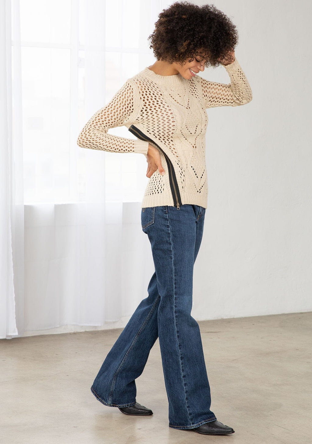 ![[Color: Natural] An image of a brunette model wearing a beige crochet pullover sweater with a side zipper accent. Featuring a crew neckline, long sleeves, and rib trim.](http://www.shoplovestitch.com/cdn/shop/files/IMP-5670--tan-pullover-sweater-7_160x.jpg?v=1757976141)