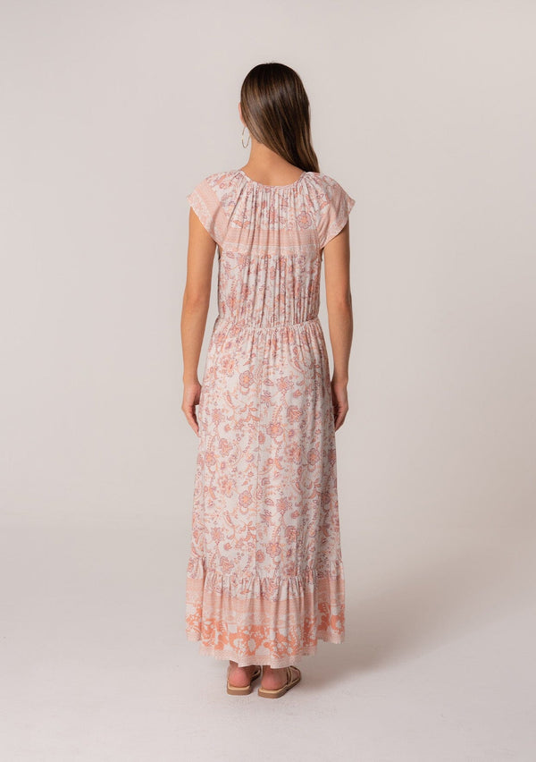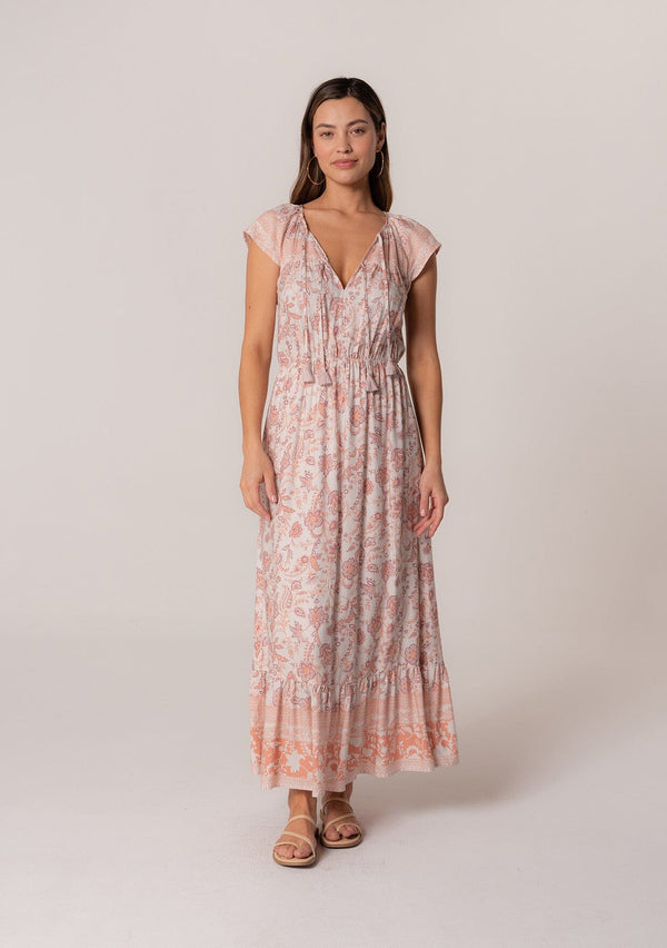 ![[Color: Natural/Clay] A back facing image of a brunette model wearing a pink floral bohemian maxi dress. With short cap sleeves, an elastic waist, a tiered flowy skirt, a v neckline, and double tassel tie neckline.](http://www.shoplovestitch.com/cdn/shop/products/I-73234WL-SFB-OJ_NATURAL-CLAY-B_{width}x.jpg?v=1748480770)