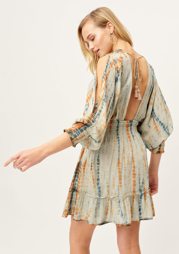 ![[Color: Sorbet/Copper] Lovestitch bohemian blue orange and white tie-dye mini dress with metallic details, long split sleeves, open back tassel ties.](http://www.shoplovestitch.com/cdn/shop/products/Lovestitchbohemianblueandwhitetiedye5_884e5dff-a4c2-4466-abd6-5ad4fbdbb88a_{width}x.jpg?v=1683913510)