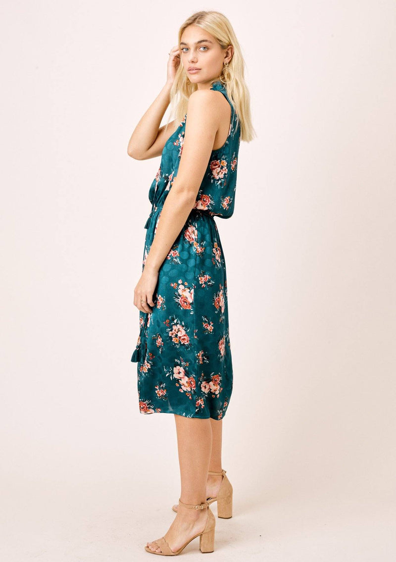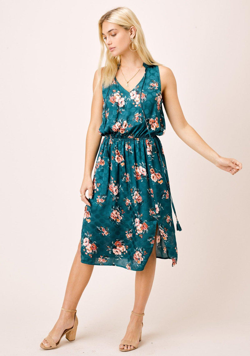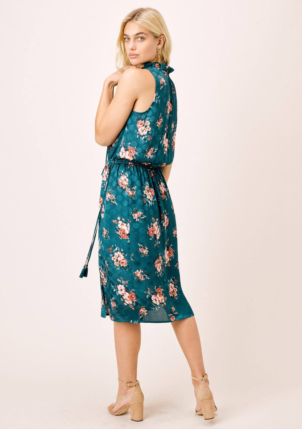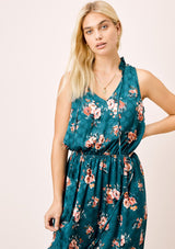 Step into Summer in our effortlessly cute mid length tank dress! Featuring a beautiful watercolor rose floral print and ruffle neck detail. An easy boho dress for the office or running errands!