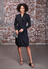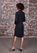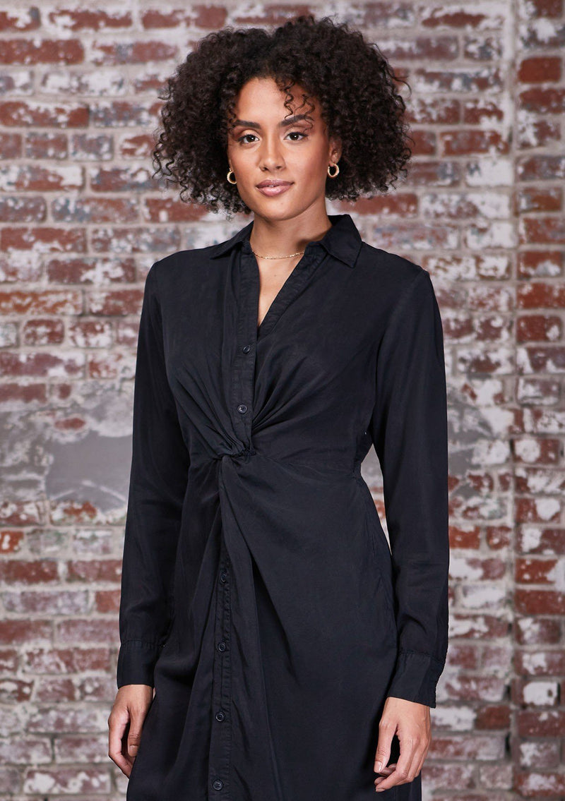 Shop The SaleA classic shirtdress silhouette with a twist! This mid-length style features a button-up front and a knot front detail. Layer it under a sweater and style it with boots for a cozy but chic look!