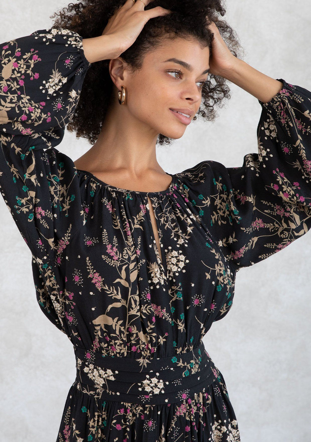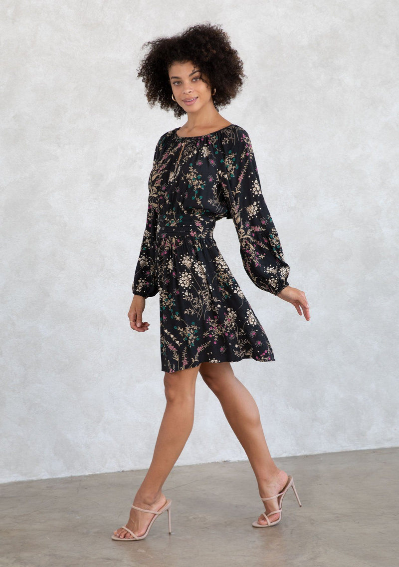 ![[Color: Black/Jade] A model earing a black and green wildflower print mini dress. With a round neckline and front keyhole detail, an open back with tassel tie closure, a pleated waist detail, and long voluminous sleeves.](http://www.shoplovestitch.com/cdn/shop/products/I-72486W-ROR-CD_BLACK-JADE-D.JPG_6f91013b-407b-49d0-9b13-5359f4d98cc7_160x.jpg?v=1748483300)