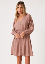![[Color: Mauve] A side facing image of a blonde model wearing a mauve pink dot print fall mini dress. With voluminous long sleeves, smocked elastic wrist cuffs, a v neckline, a self covered button front, and an elastic waist.](http://www.shoplovestitch.com/cdn/shop/files/I-73046W-SJB-AE_MAUVE-S_9c87e462-0cb2-41f0-b04d-bcf1b68adbf3_160x.jpg?v=1748480433)