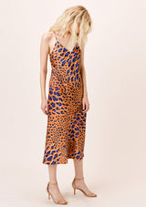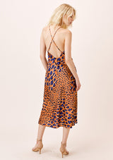 Gorgeous bias-cut animal print midi tank dress. Soft and silky with a bit of shine, this slip dress features a sexy criss-cross back detail, delicate spaghetti straps, and a flattering v-neckline. Layer it under a t-shirt for a casual daytime look, or dress it up with heels for special occasions.