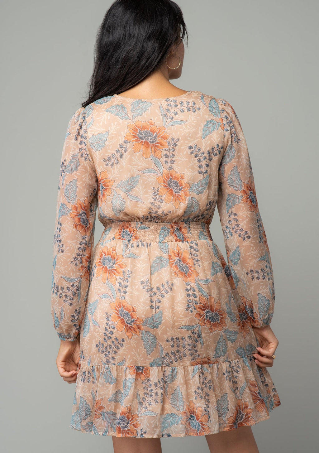 Short and sweet! This ultra-pretty mini dress is designed in a delicate floral print featuring voluminous long sleeves, a flirty surplice v-neckline, and a smocked elastic waist for added definition. Pair this ethereal, ultra-sweet style with a sandal for summer, or warm it up with a knee boot for fall. This versatile mini is a must-have style for any time of year!