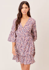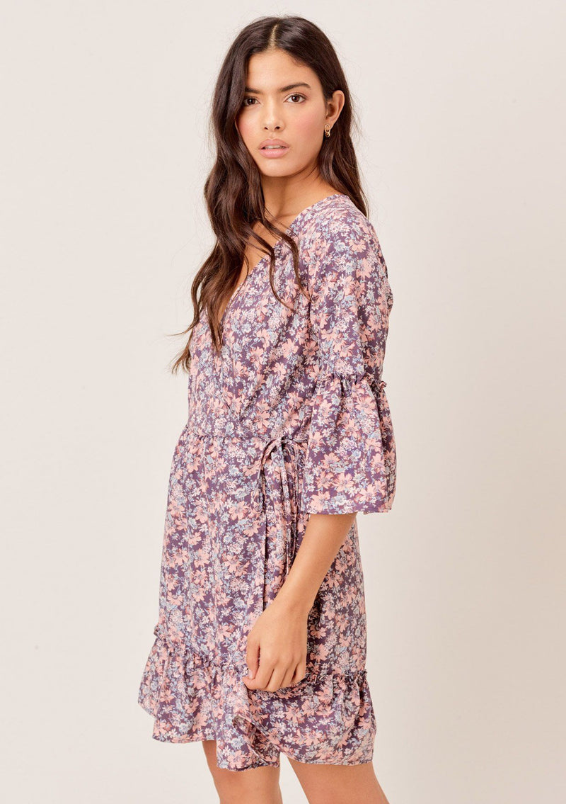 Your search for the perfect bohemian mini wrap dress is over! This classic style features a flattering v-neckline, voluminous bell sleeves, and a tiered skirt. You're sure to turn heads in this classic bohemian silhouette.