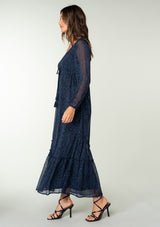 When your next special occasion requires a very special dress. Our best-selling silhouette is re-designed in a festive, light-catching clip dot chiffon. With voluminous long sleeves, a ruffle-trimmed asymmetric tiered skirt, and a flattering empire waist with an adjustable tassel tie.