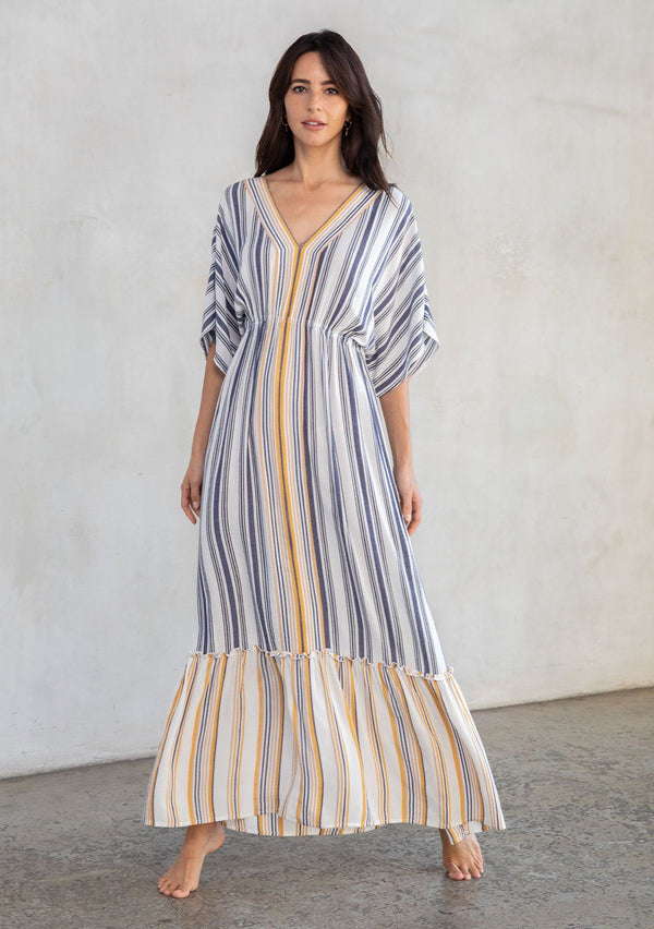 ![[Color: Navy/Dijon] A model wearing a vacation worthy navy and yellow striped bohemian maxi dress. With short kimono sleeves, a tiered skirt, and an elastic waist.](http://www.shoplovestitch.com/cdn/shop/products/I-72807W-RTN-MP_NAVY-DIJON-B_{width}x.jpg?v=1748482742)