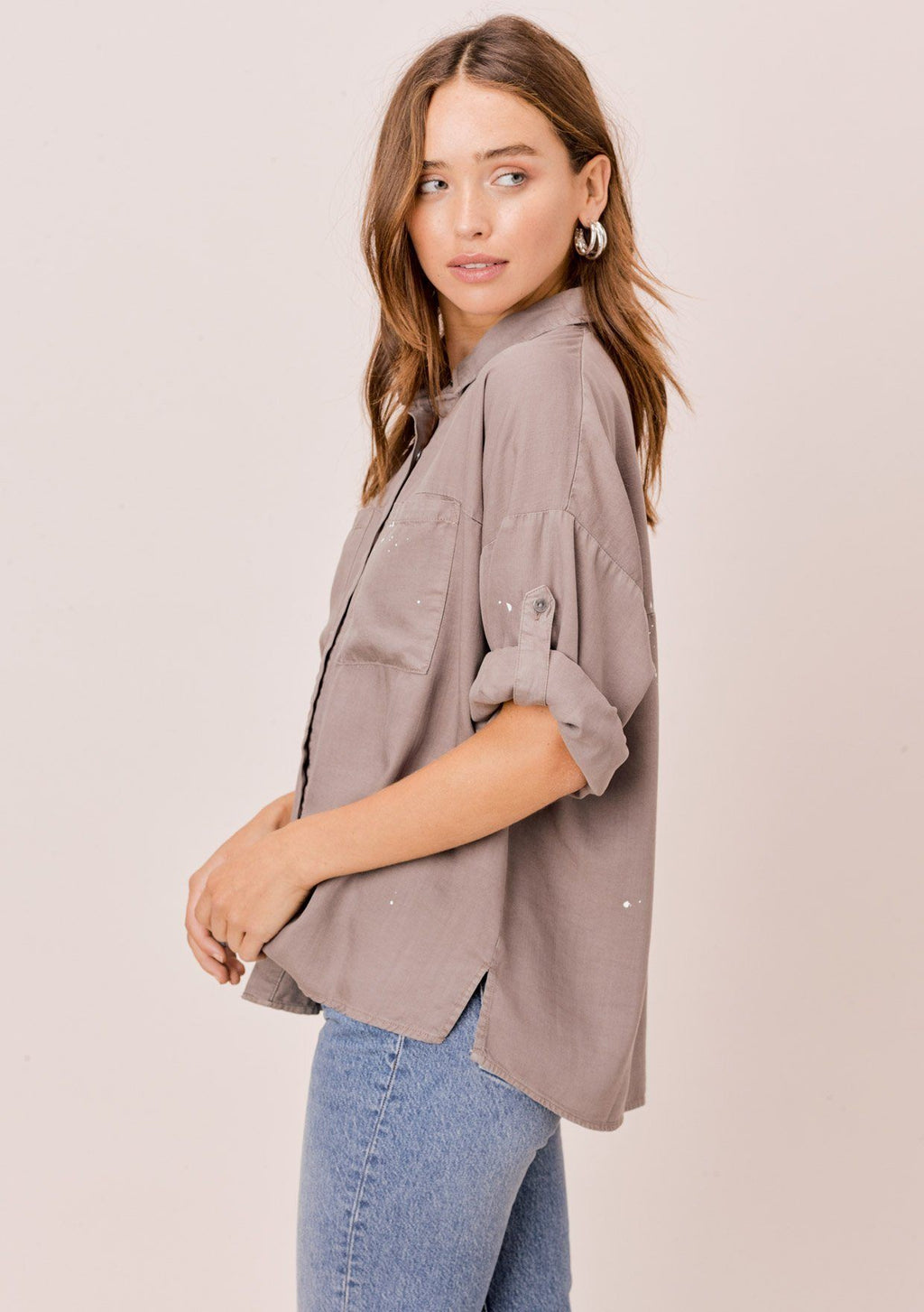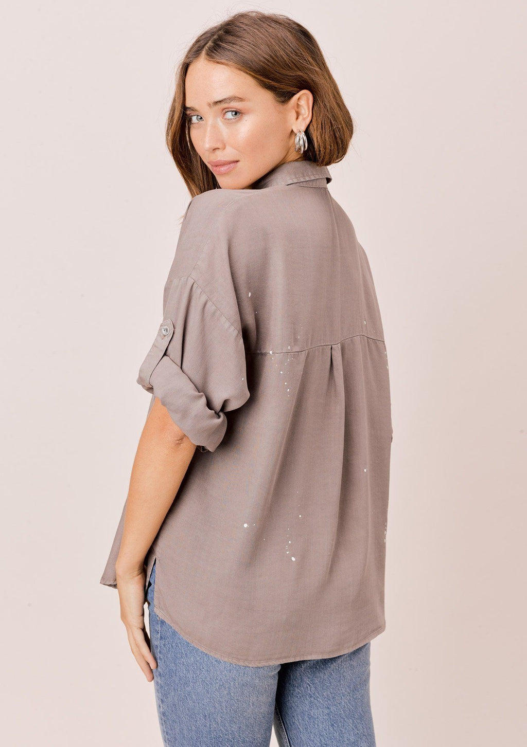 ![[Color: Mushroom] Lovestitch mushroom short sleeve, tencel, buttondown shirt with roll tab sleeves and paint splatter detail.](http://www.shoplovestitch.com/cdn/shop/products/Lovestitch-Tencel-Paint-Splatter-Buttondown-Short-Sleeve-Grey-5_a57906f7-ebd2-4909-95f0-b703ea4df23a_160x.jpg?v=1763513418)