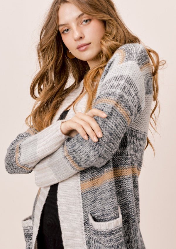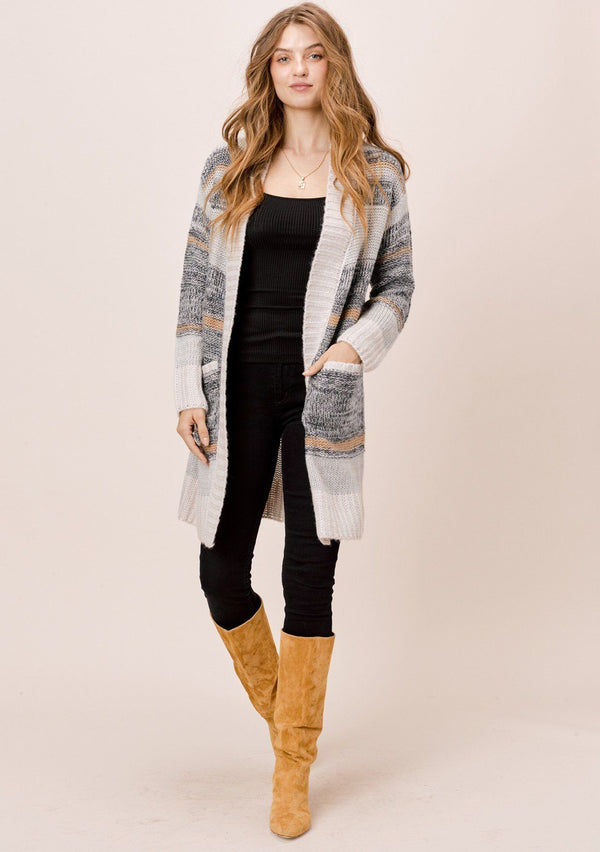 [Color: Mustard Multi] Lovestitch Chevron Stripe Open Cardigan[Color: Mustard Multi] Lovestitch Chevron Stripe Open Cardigan