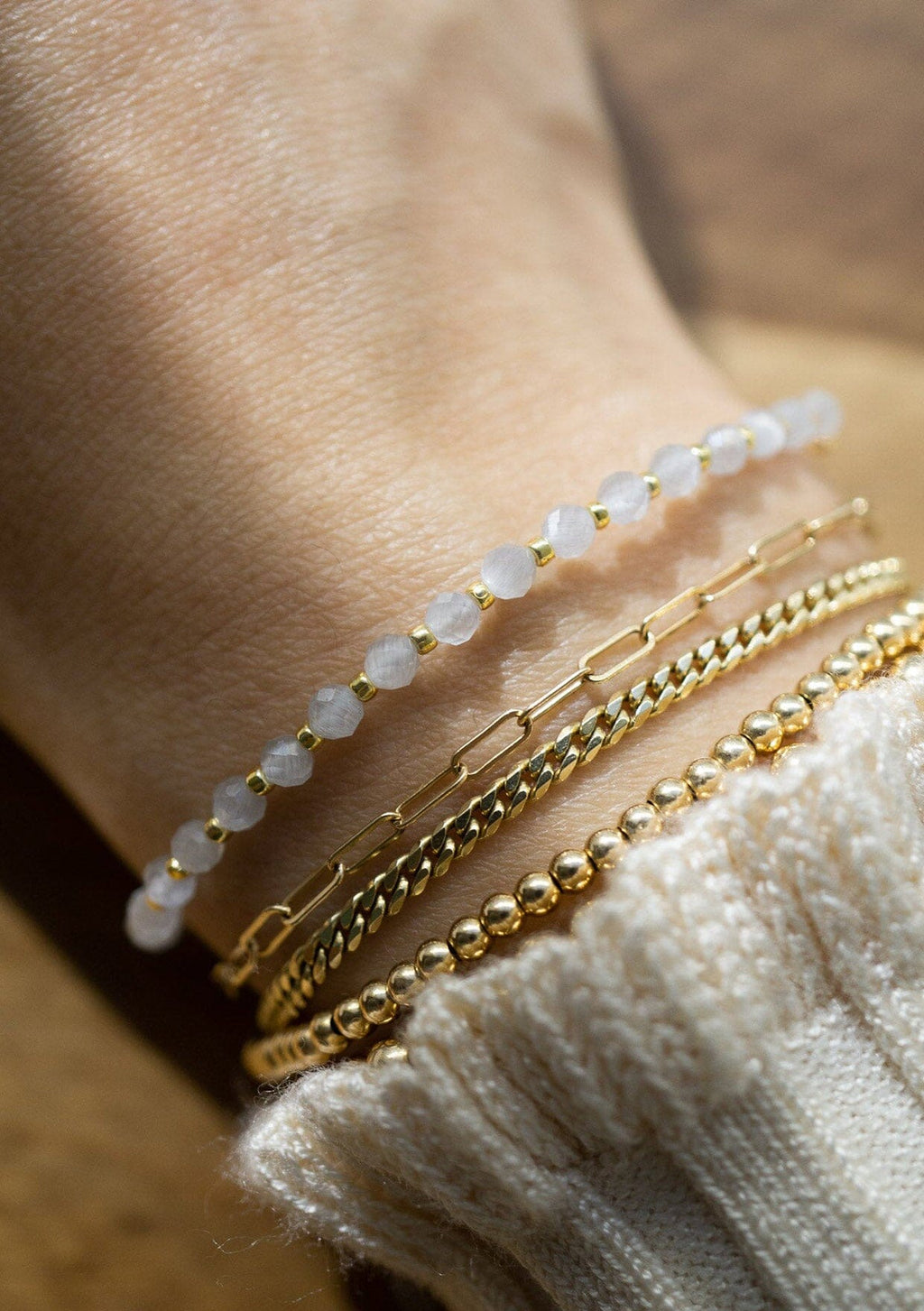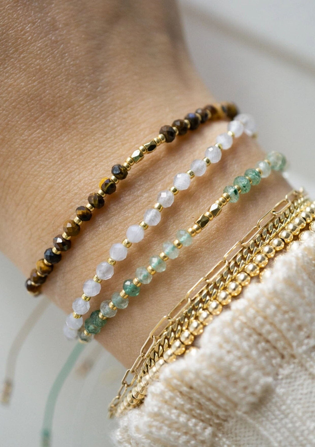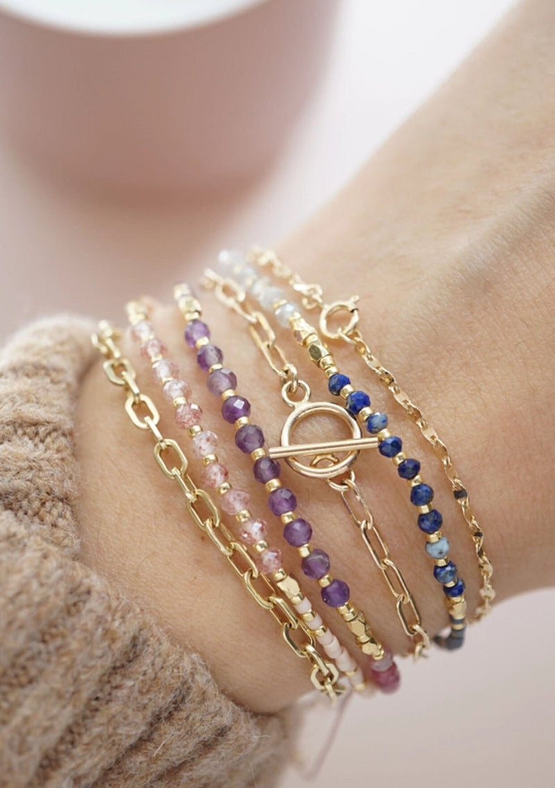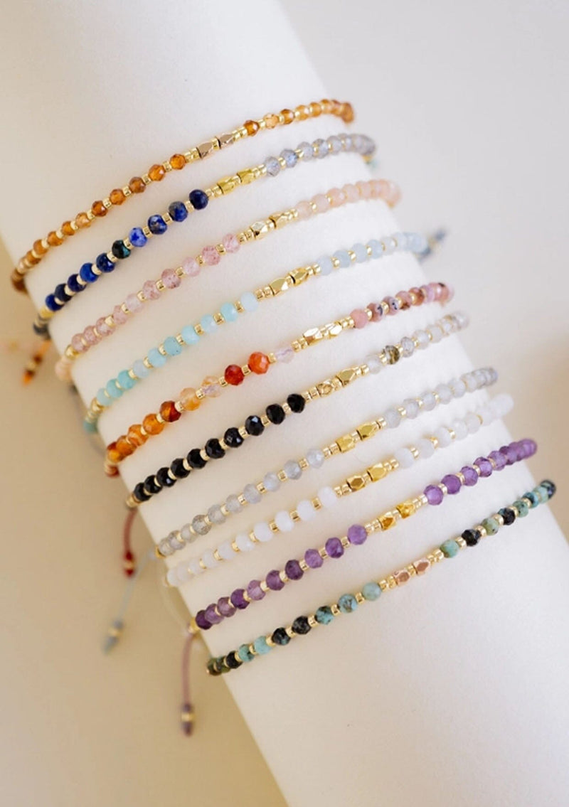 This everyday bracelet combines natural healing stones with shimmering metal accents, creating a piece that embodies the earth's soothing powers. Whether you're seeking peace, prosperity, strength, courage, or love, each personalized bracelet is designed to bring a sense of balance and help you navigate life with peace of mind.