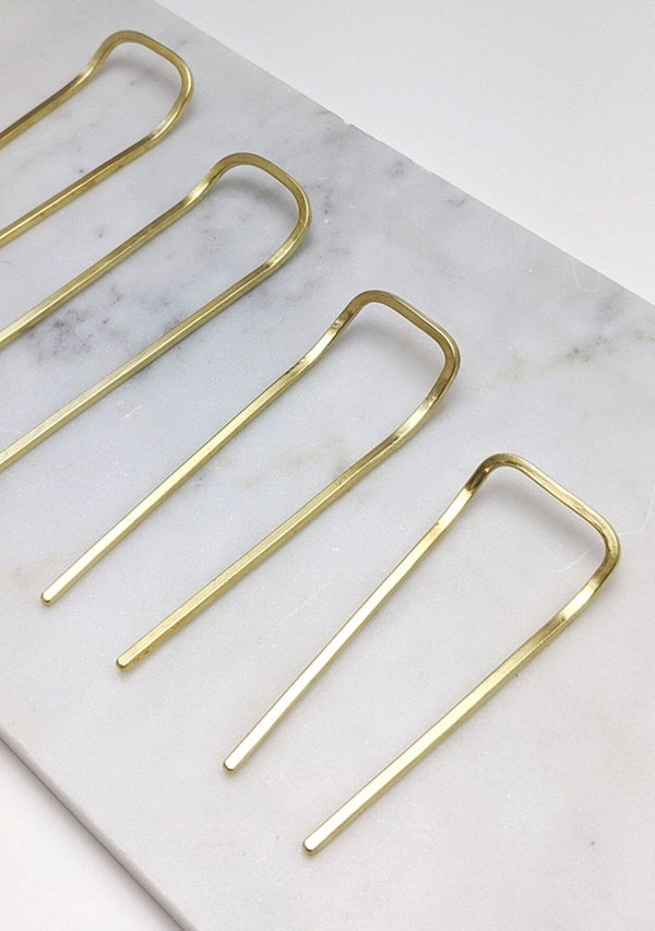 [Color: Brass] A timeless French hairpin handcrafted from heavy recycled brass. [Color: Brass] A timeless French hairpin handcrafted from heavy recycled brass.