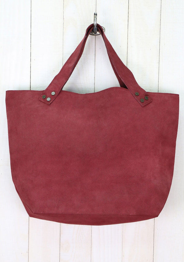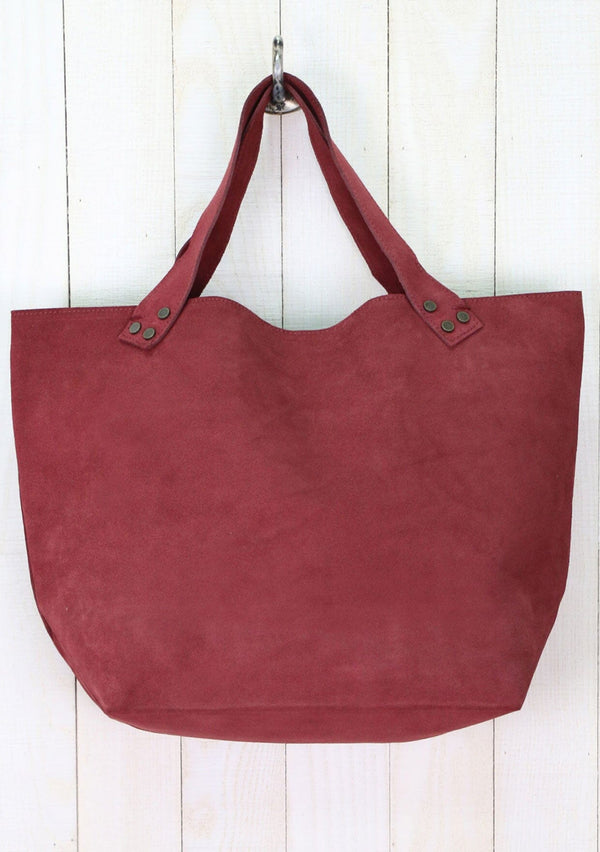 [Color: Vintage Wine] A classic wine red suede leather tote bag.[Color: Vintage Wine] A classic wine red suede leather tote bag.