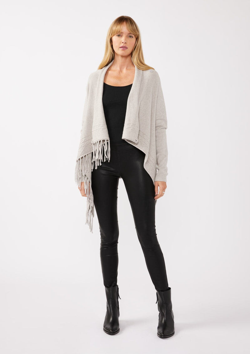 ![[Color: Heather Grey] A front-facing image of a blonde model wearing a grey fringed cardigan with an asymmetrical wrap design. The cardigan features hidden shoulder buttons for a wrap-front style, long sleeves, and intricate cable knit detailing.](http://www.shoplovestitch.com/cdn/shop/files/092024_422_160x.jpg?v=1748478541)