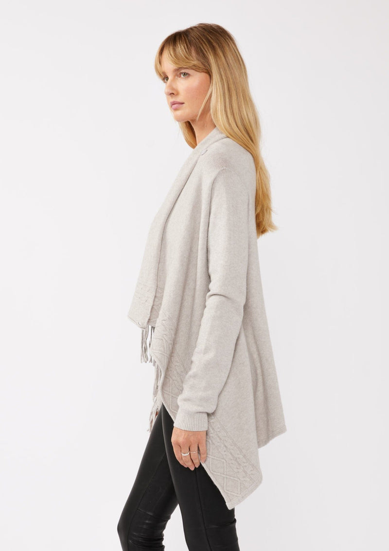 ![[Color: Heather Natural] A detail image of a blonde model wearing a brown tan fringed cardigan with an asymmetrical wrap design. The cardigan features hidden shoulder buttons for a wrap-front style, long sleeves, and intricate cable knit detailing.](http://www.shoplovestitch.com/cdn/shop/files/092024_457_160x.jpg?v=1748478541)