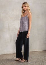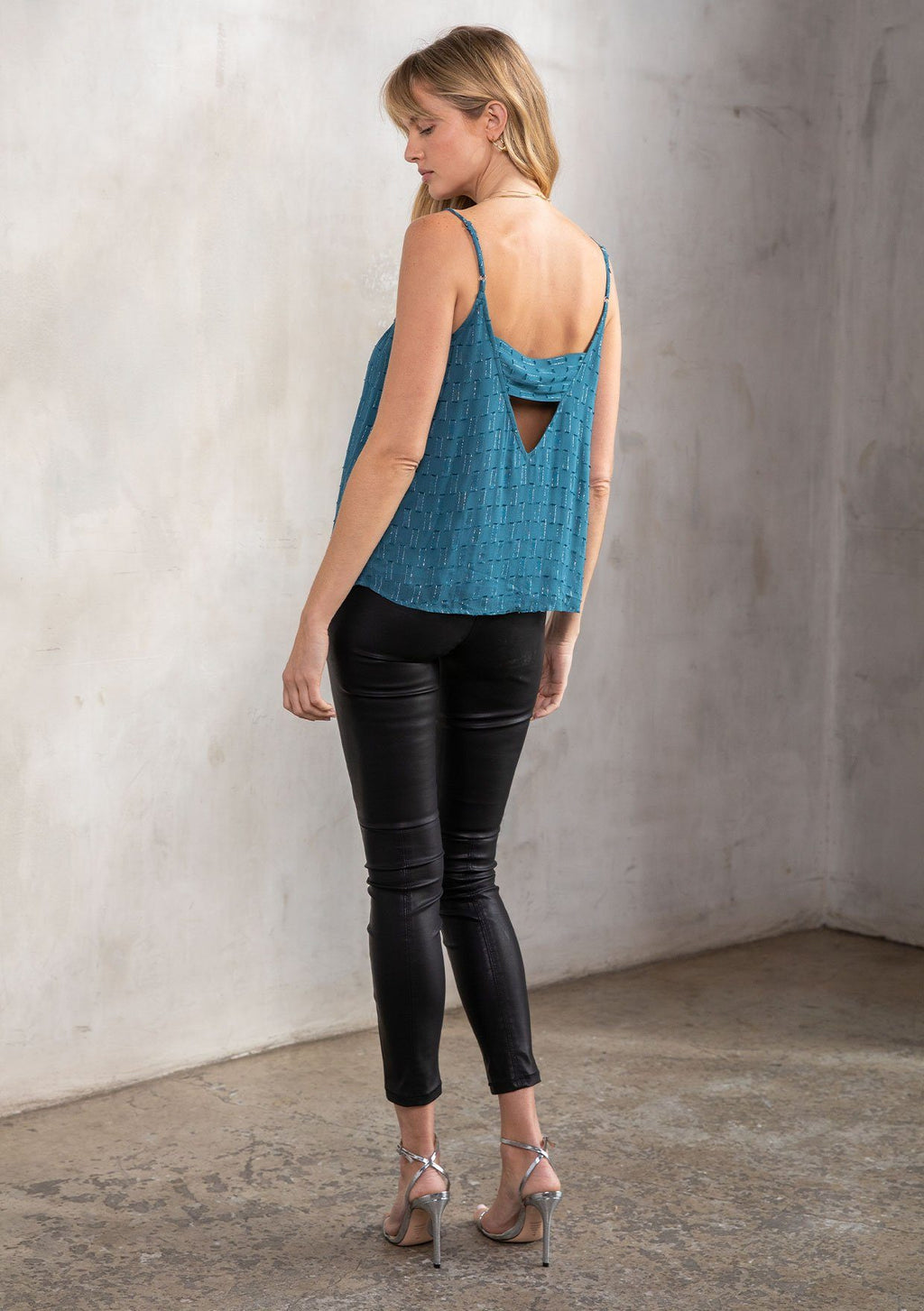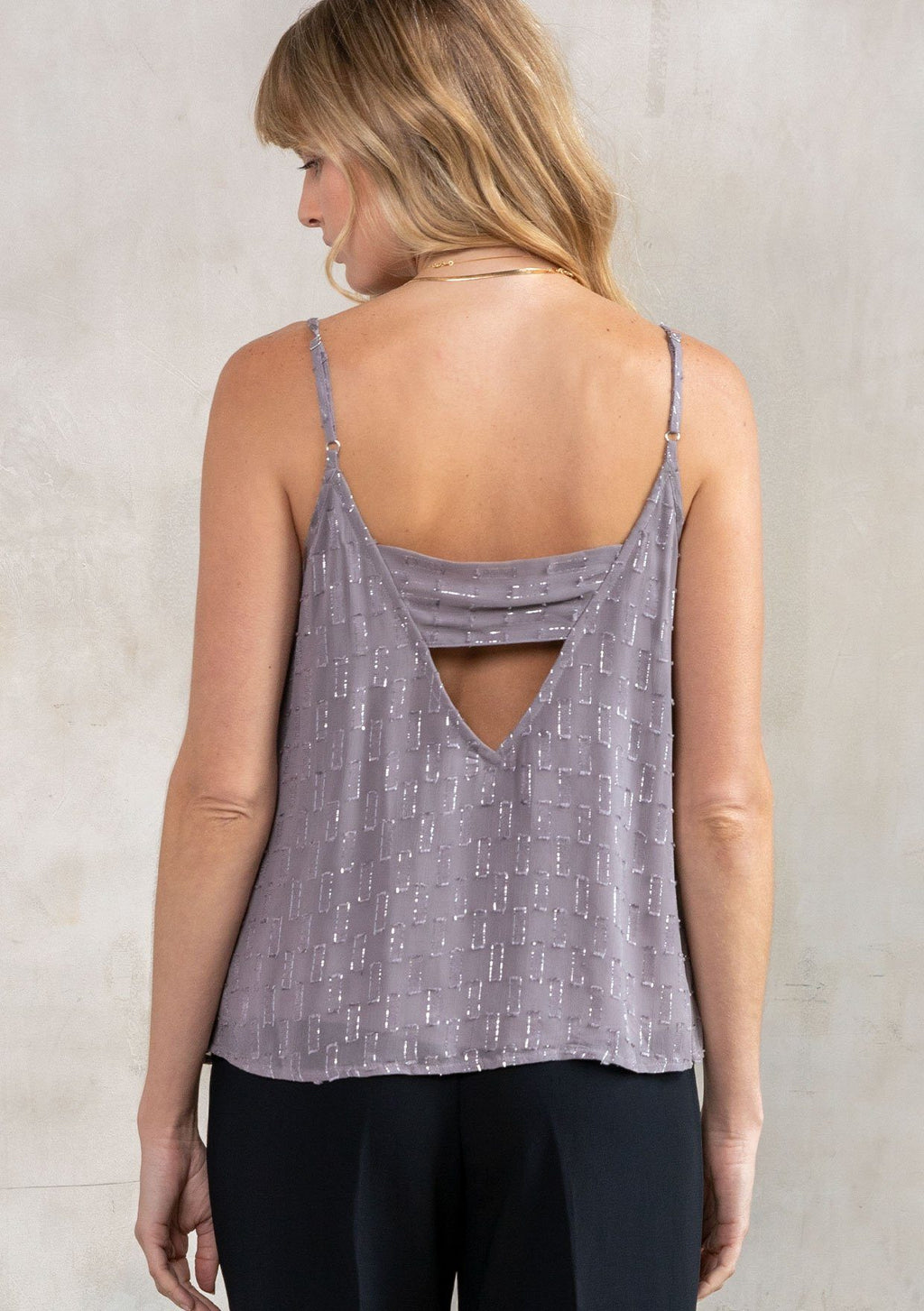 Shop The SaleA touch of sparkle adds a festive touch to this classic flowy camisole. Designed in clipped chiffon with light-catching metallic details. We love the ultra-flattering ruffled scoop neckline, and the cut-out back detail adds a sexy peek-a-boo moment.