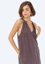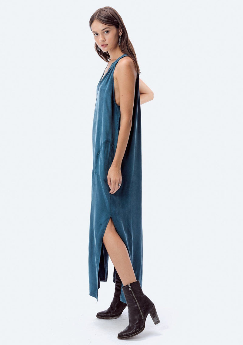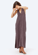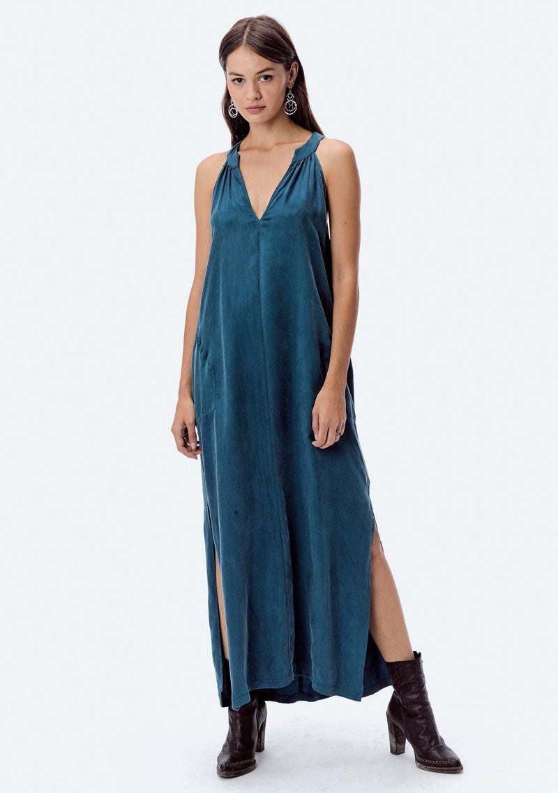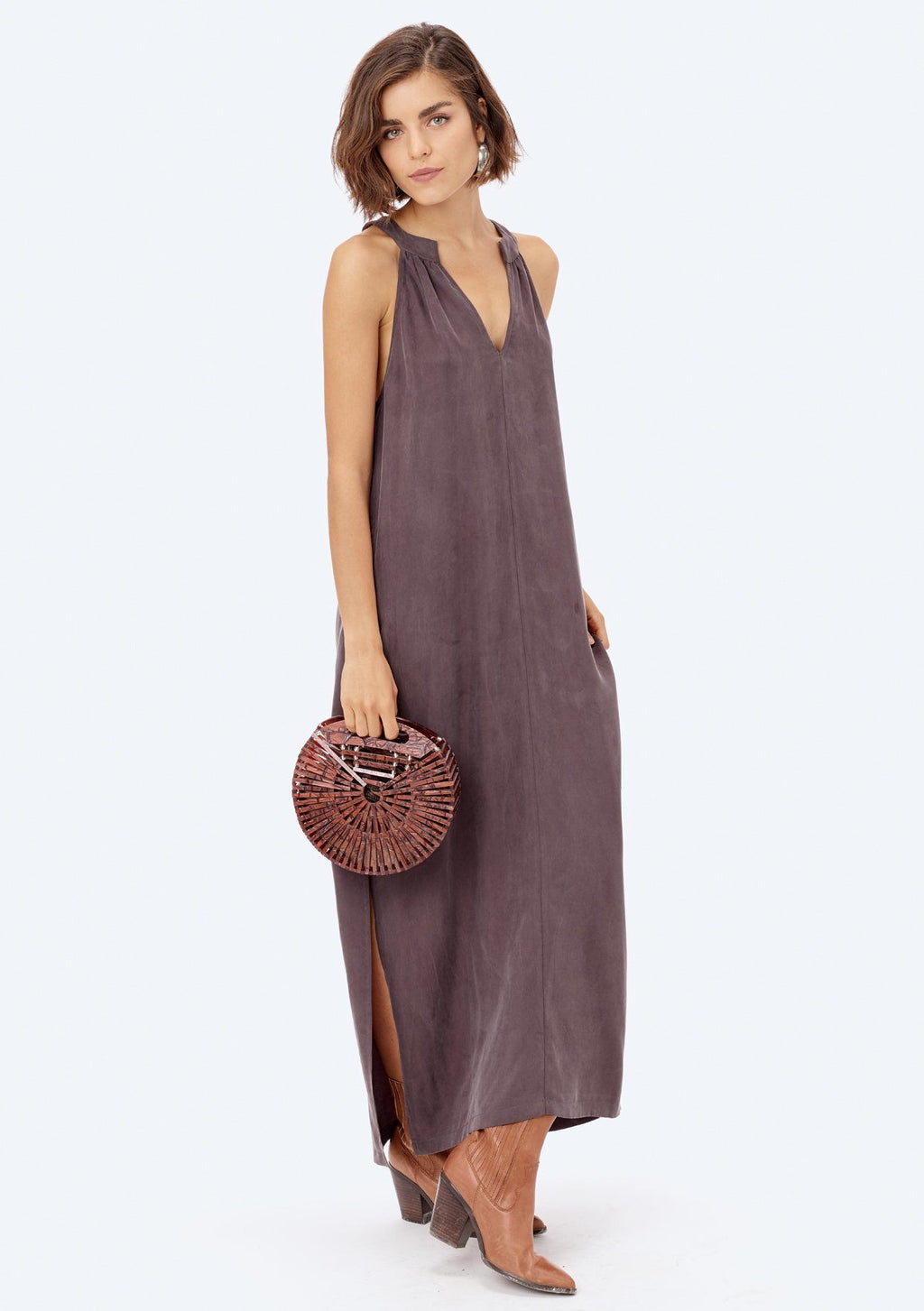 Shop The SaleA soft and silky sleeveless maxi dress. Featuring a flattering v-neckline, sexy side slits, and a unique racer back with subtle shirring details. An easy throw-on-and-go tank top dress that is both elegant and comfortable.