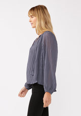 A favorite for both the office and your next holiday party, this versatile boho blouse is your go-to for effortless style! Easy to wear and even easier to pair, its flowy pleated silhouette and voluminous long sleeves make it perfect for any occasion that requires a bit of flair. We love pairing this chic piece with dark denim for a seamless day to night transition!