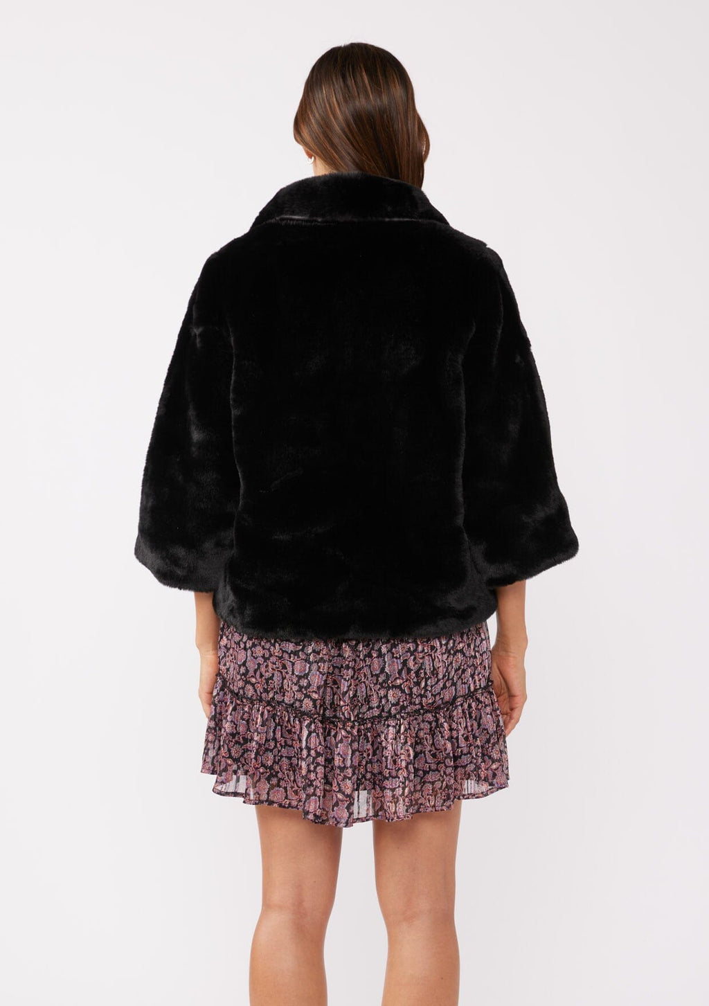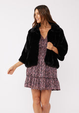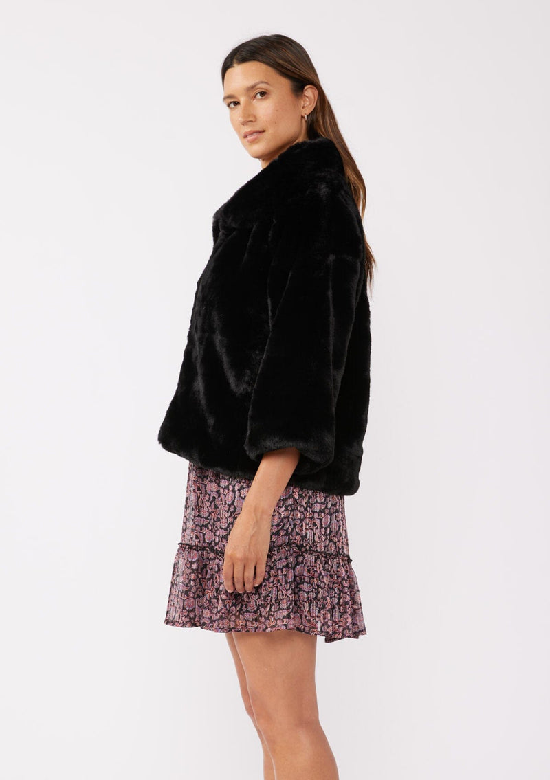 A holiday season must-have, this vintage-inspired classic black faux fur jacket with an exaggerated collar is beautiful, soft & perfect for holiday parties!