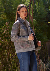 An elevated take on the classic shirt jacket, our soft patchwork plaid jacket features a collared neckline, a button front, and essential side pockets. A cool layering style that adds instant polish to any outfit.