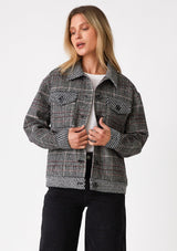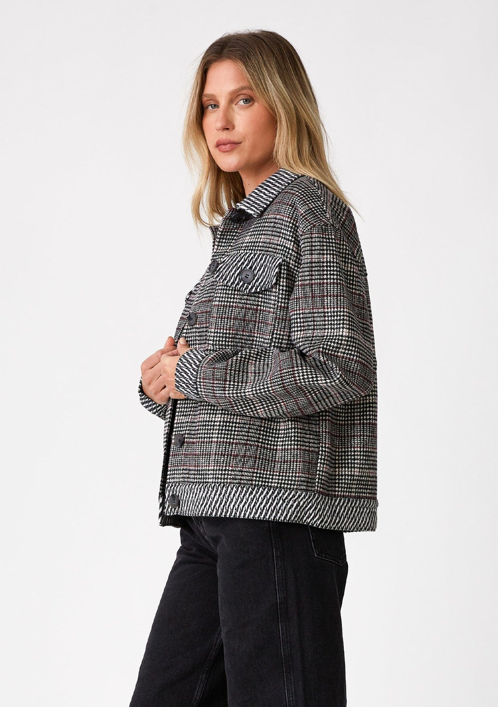 A classic shirt jacket designed in a cool black and red patchwork plaid.